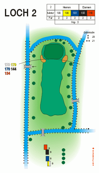Gelb: 145 Meter, PAR 3, Handicap 17Gelb (bis 12/2012): 145 Meter, PAR 3, Handicap 15