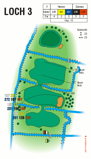Gelb: 431 Meter, PAR 5, Handicap 11Gelb (bis 12/2012): 431 Meter, PAR 5, Handicap 5