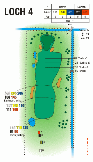 Gelb: 505 Meter, PAR 5, Handicap 7Gelb (bis 12/2012): 505 Meter, PAR 5, Handicap 11