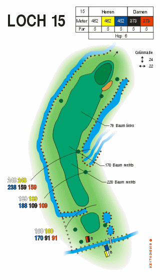 Gelb: 461 Meter, PAR 5, Handicap 8Gelb (bis 12/2012): 461 Meter, PAR 5, Handicap 6