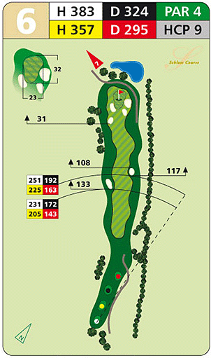 Gelb: 357 Meter, PAR 4, Handicap 9Gelb (bis 12/2011): 357 Meter, PAR 4, Handicap 9