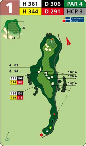 Gelb: 344 Meter, PAR 4, Handicap 3Gelb (bis 12/2011): 344 Meter, PAR 4, Handicap 3