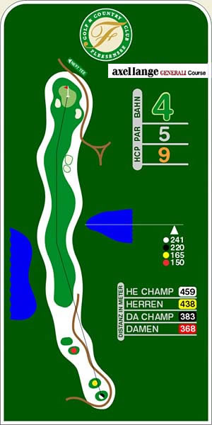 Gelb: 438 Meter, PAR 5, Handicap 3Gelb (bis 12/2011): 438 Meter, PAR 5, Handicap 9