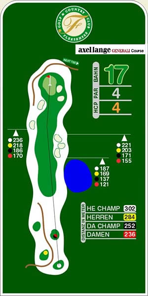 Gelb: 284 Meter, PAR 4, Handicap 8Gelb (bis 12/2011): 284 Meter, PAR 4, Handicap 4