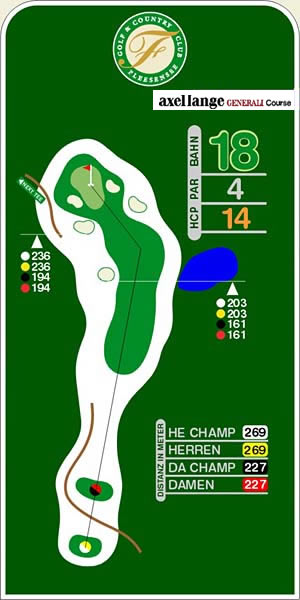 Gelb: 269 Meter, PAR 4, Handicap 12Gelb (bis 12/2011): 269 Meter, PAR 4, Handicap 14