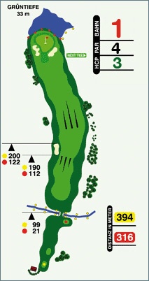 Gelb: 394 Meter, PAR 4, Handicap 3