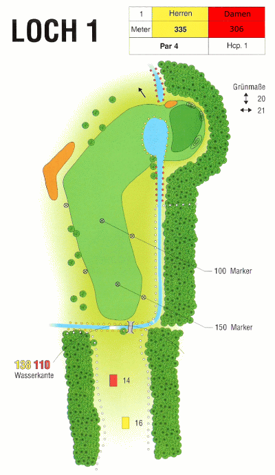 Gelb: 335 Meter, PAR 4, Handicap 1