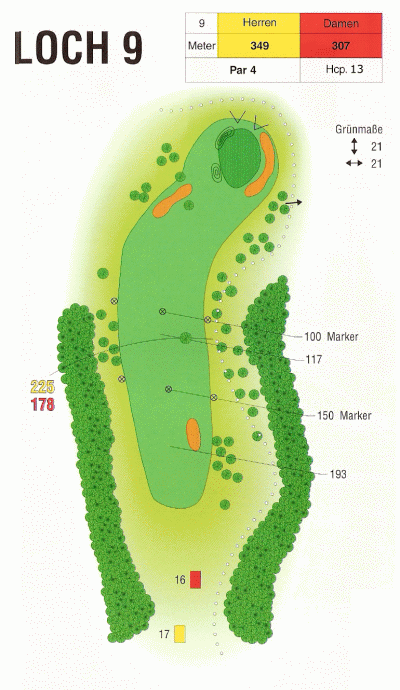 Gelb: 349 Meter, PAR 4, Handicap 13