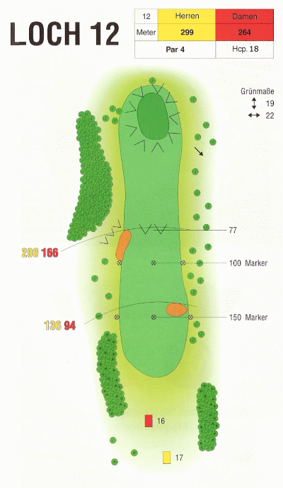 Gelb: 299 Meter, PAR 4, Handicap 18