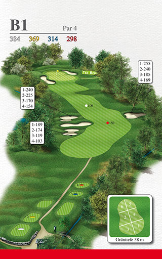 Gelb: 369 Meter, PAR 4, Handicap 6Gelb (bis 12/2013): 369 Meter, PAR 4, Handicap 12
