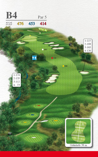 Gelb: 476 Meter, PAR 5, Handicap 2Gelb (bis 12/2013): 476 Meter, PAR 5, Handicap 8