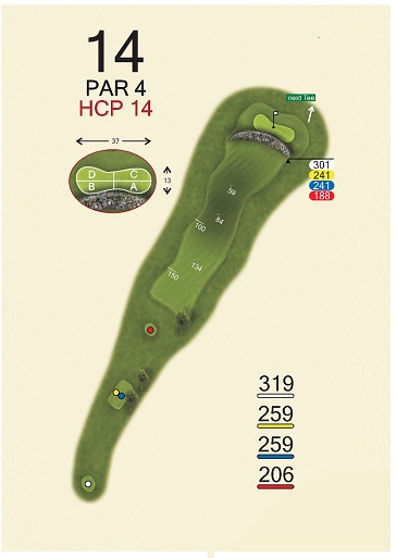 Gelb: 259 Meter, PAR 4, Handicap 14