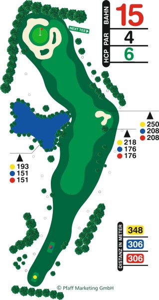 Gelb: 348 Meter, PAR 4, Handicap 6