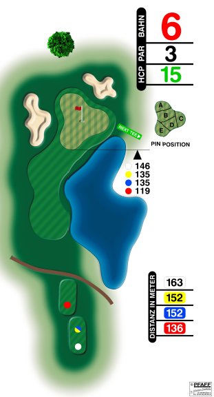Gelb: 152 Meter, PAR 3, Handicap 11Gelb (bis 12/2013): 152 Meter, PAR 3, Handicap 15