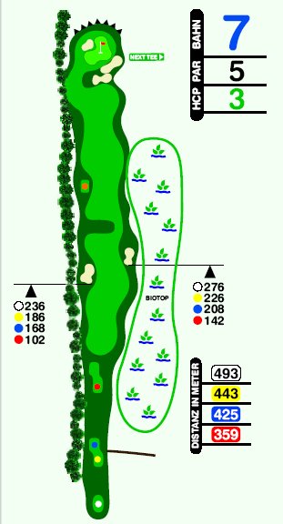 Gelb: 443 Meter, PAR 5, Handicap 3